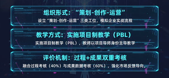 1.組織形式:設立“策劃-創作-運營”三類工位,模擬企業實戰流程;